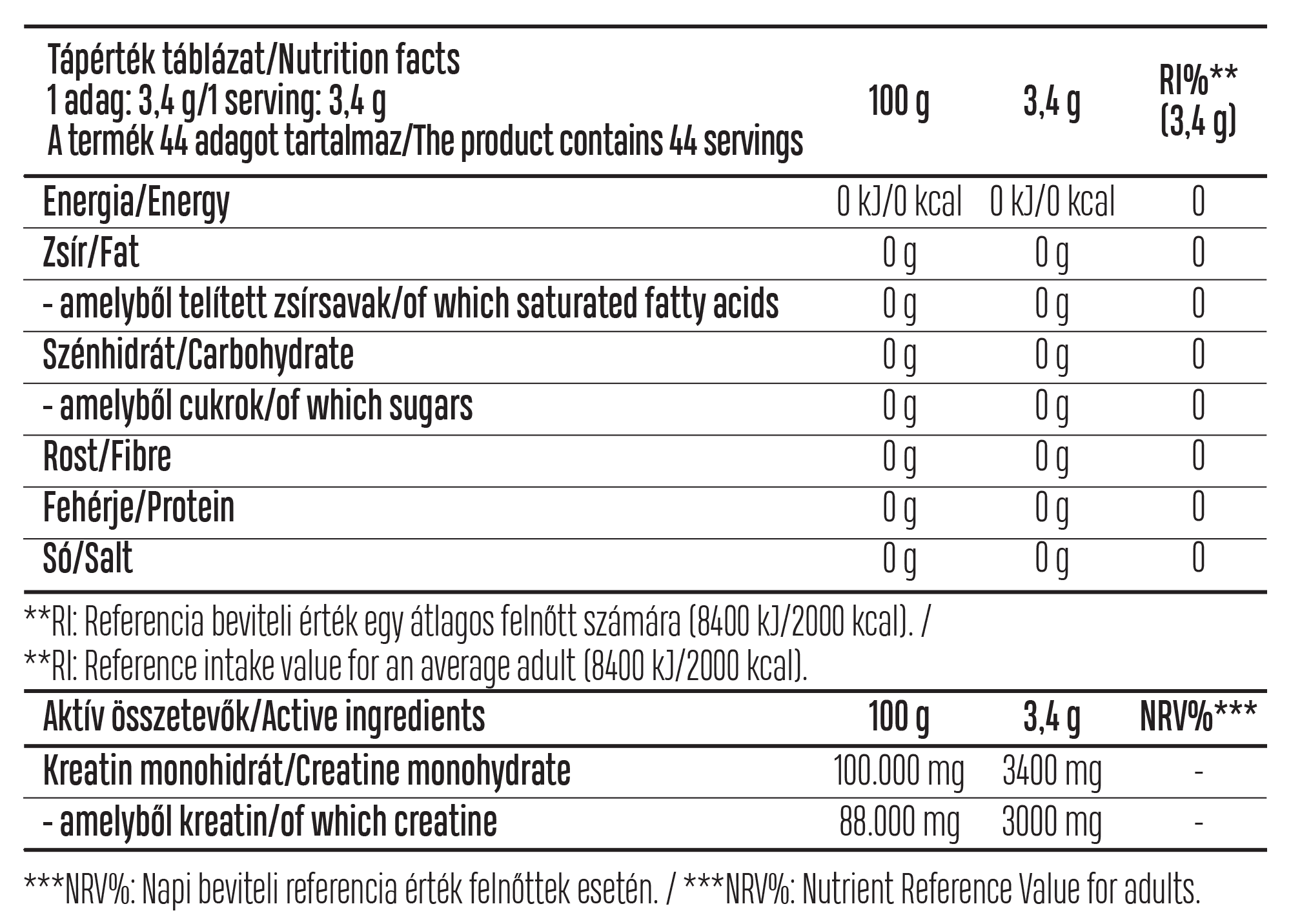 100% kreatin-monohidrát – adalékanyagok nélkül.